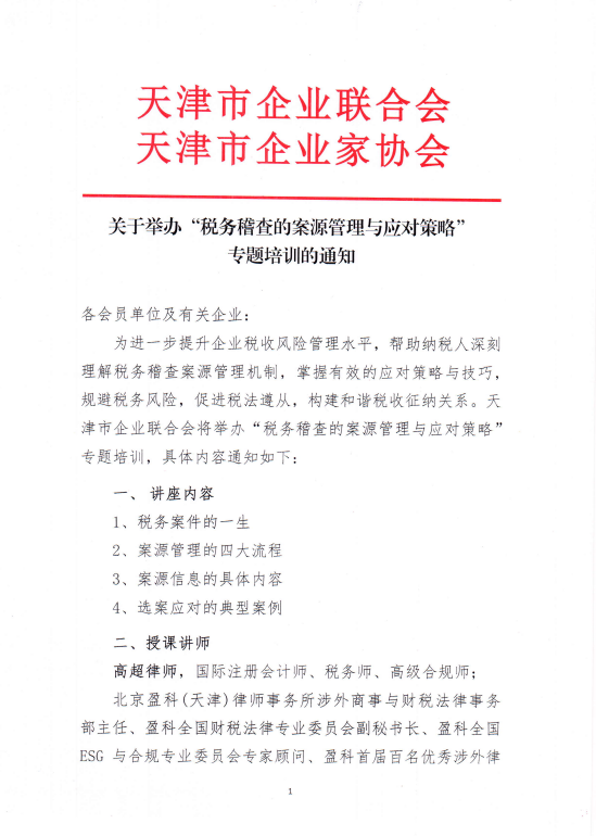 培训信息丨关于举办“税务稽查的案源管理与应对策略”专题培训的通知
