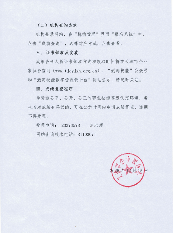 关于劳动关系协调师职业技能等级认定成绩公示的通知
