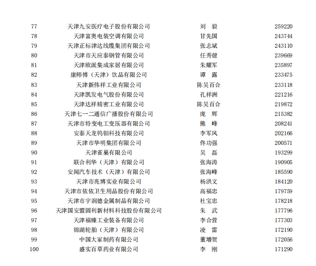 2025年天津制造业企业100强排序名单