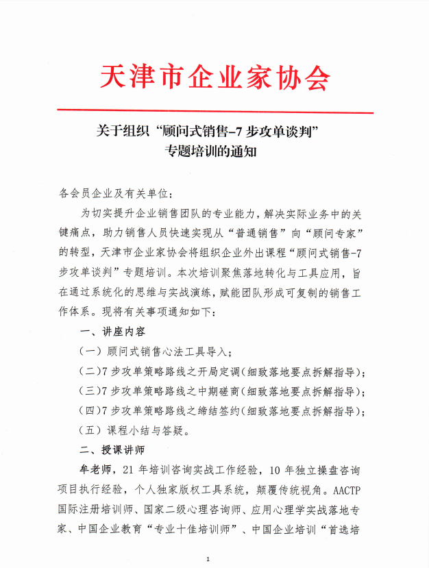 培训信息丨关于组织“顾问式销售-7步攻单谈判”专题培训的通知